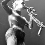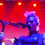 The Polish born, Chicago based enigma started the evening ignition with “I Am The Fire,” bringing her version of what’s between peace and anarchy. Good thing the grenade on her mic was never used. With a spiked mohawk and futuristic, sci-fi attire, she resembled a modern-morf of Wendy O’ Williams and Annie Lennox. The one woman band/stage vixen took to the podium fast, guitar in hand. Face, skin and outfit radiated in the spotlights, slowly seducing curious faces, one fan and phone at a time with a little punk and a little Mad Max.